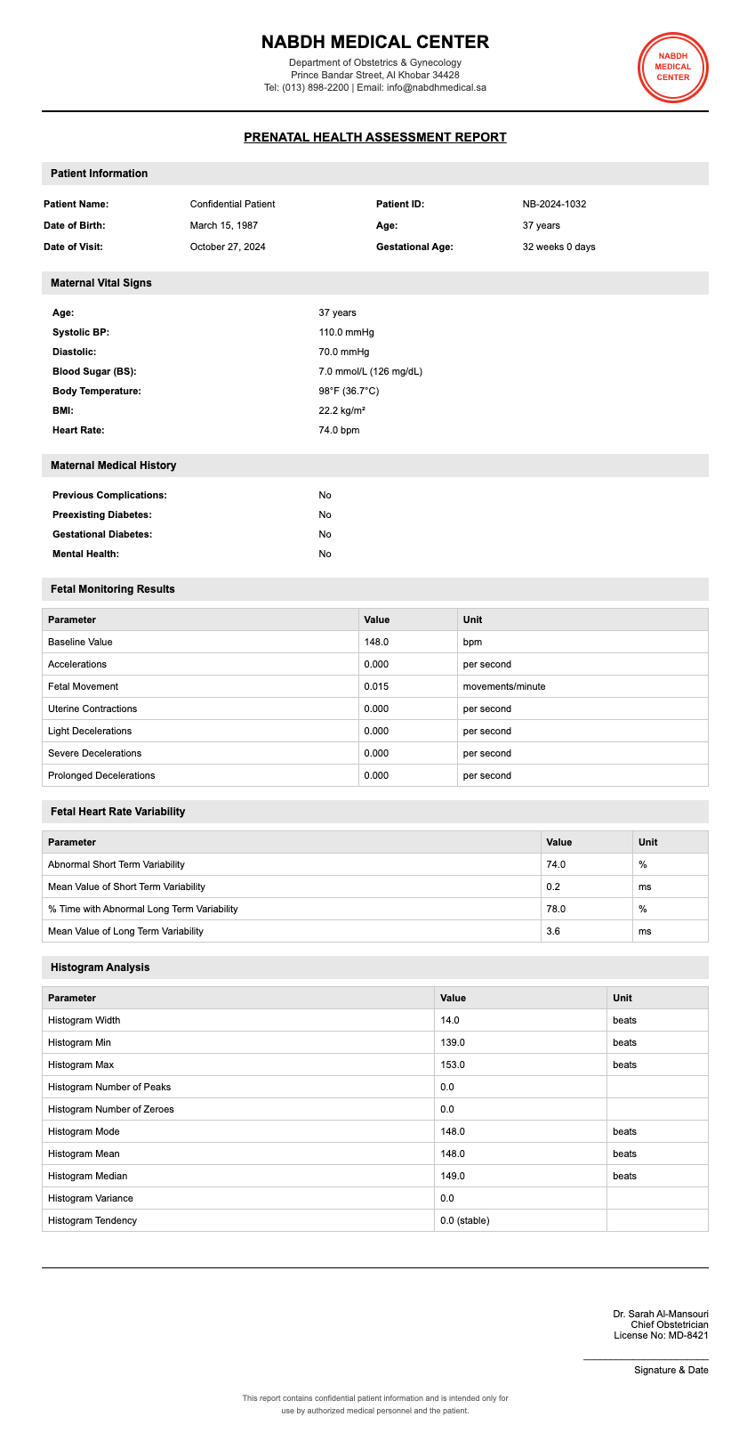 الحصول على تنبؤات صحية للحمل والجنين باستخدام الرقم الوطني